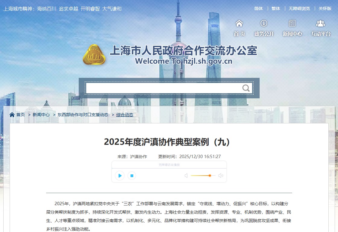【编者按】近日,上海市人民政府合作交流办公室官方网站及“沪滇协作”官方微信公众号同步发布《2025年度沪滇协作典型案例》。上海国际集团在云南省丘北县出水寨村创新打造的“产业+文化+教育”综合帮扶模式收录其中。该案例生动展现了上海国资国企积极响应号召,主动融入国家乡村振兴战略,通过系统化、可持续的帮扶实践,为云南地区发展注入动力的积极作为与担当。